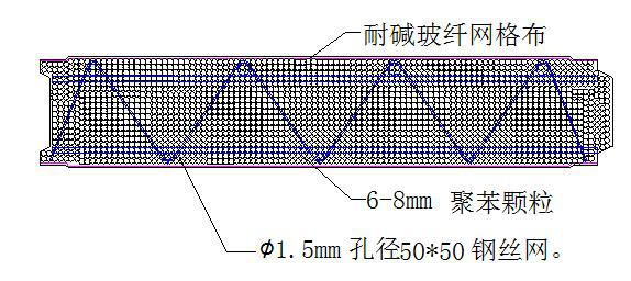 內(nèi)隔墻板應(yīng)采用絲徑為1.3mm~1.6mm,網(wǎng)格為50mm×50mm或25mm×25mm的鋼網(wǎng);外墻板應(yīng)采用絲徑為1.7mm~3.0mm,網(wǎng)格為50mm×50mm或25mm×25mm的鋼網(wǎng);其質(zhì)量應(yīng)符合QB/T 3897的規(guī)定。